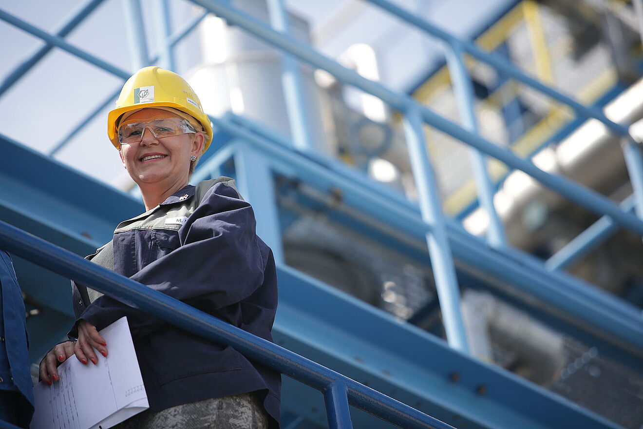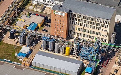 Nuestras acciones se caracterizan por un equilibrio económico-ecológico. Sólo consideramos que las nuevas soluciones están verdaderamente orientadas al futuro si reducen simultáneamente el uso de materias primas, conservan los recursos y son respetuosas con el medio ambiente. Con la ayuda del Estado de Sajonia-Anhalt y del FEDER, LCP Leuna Carboxylation Plant GmbH está reduciendo las emisiones de CO2-en la planta de tratamiento de sólidos y en la planta de precipitación.